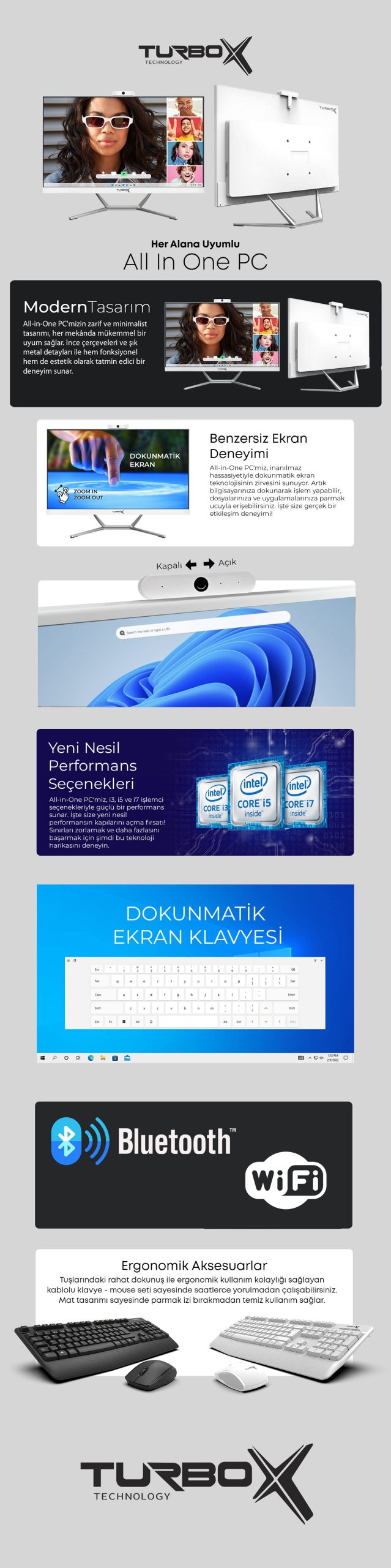 19 Kasım 2024i7 5500U 8GB Ram 512GB SSD 23.8 Full HD Dokunmatik BT Webcam WiFi All in One PC